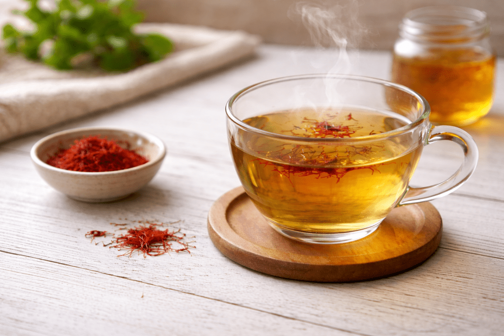Készítsd el a teát a megszokott módon, majd öntsd hozzá a sáfrányos kivonatot.