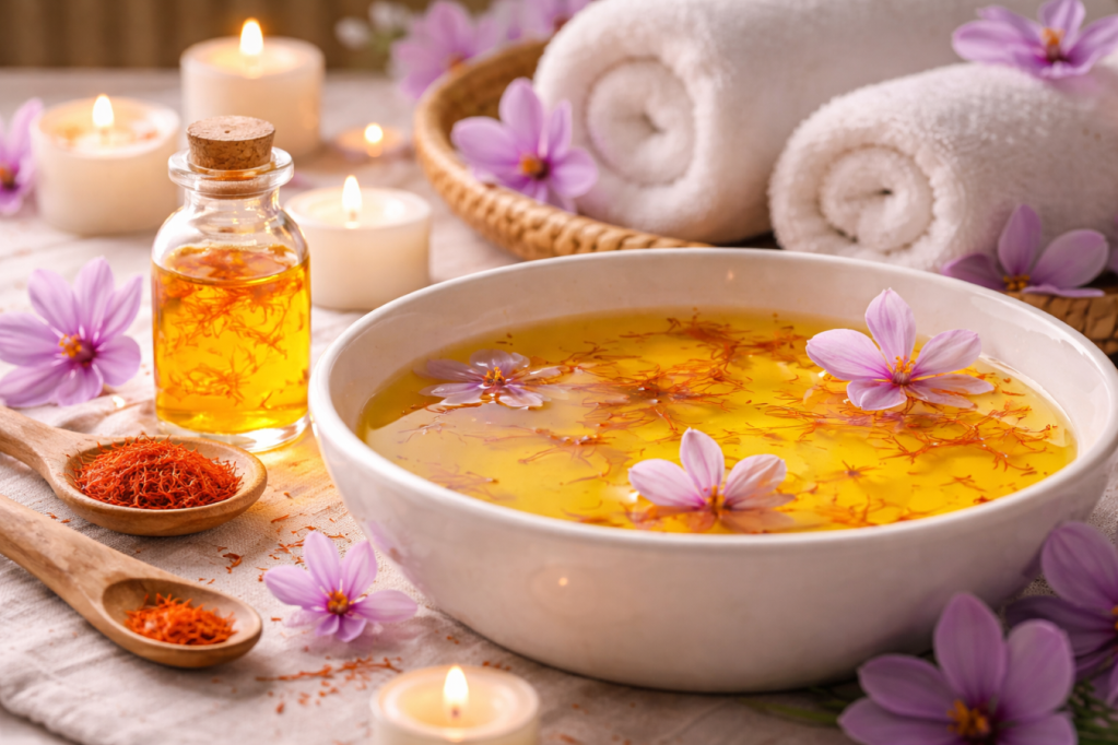 A sáfrány használata a fürdőkultúrákban nem új jelenség. A perzsa és indiai hagyományokban vízhez, tejhez és olajos keverékekhez kapcsolódva jelent meg. Ezek az alkalmazások a testápolás és a rituális tisztálkodás részei voltak.