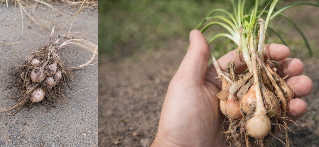 A vegetációs időszak során a levelek fotoszintézissel asszimilátákat termelnek. Ezek a gumóban halmozódnak fel, elsősorban keményítő formájában. A felhalmozott tartalékok szolgálják: